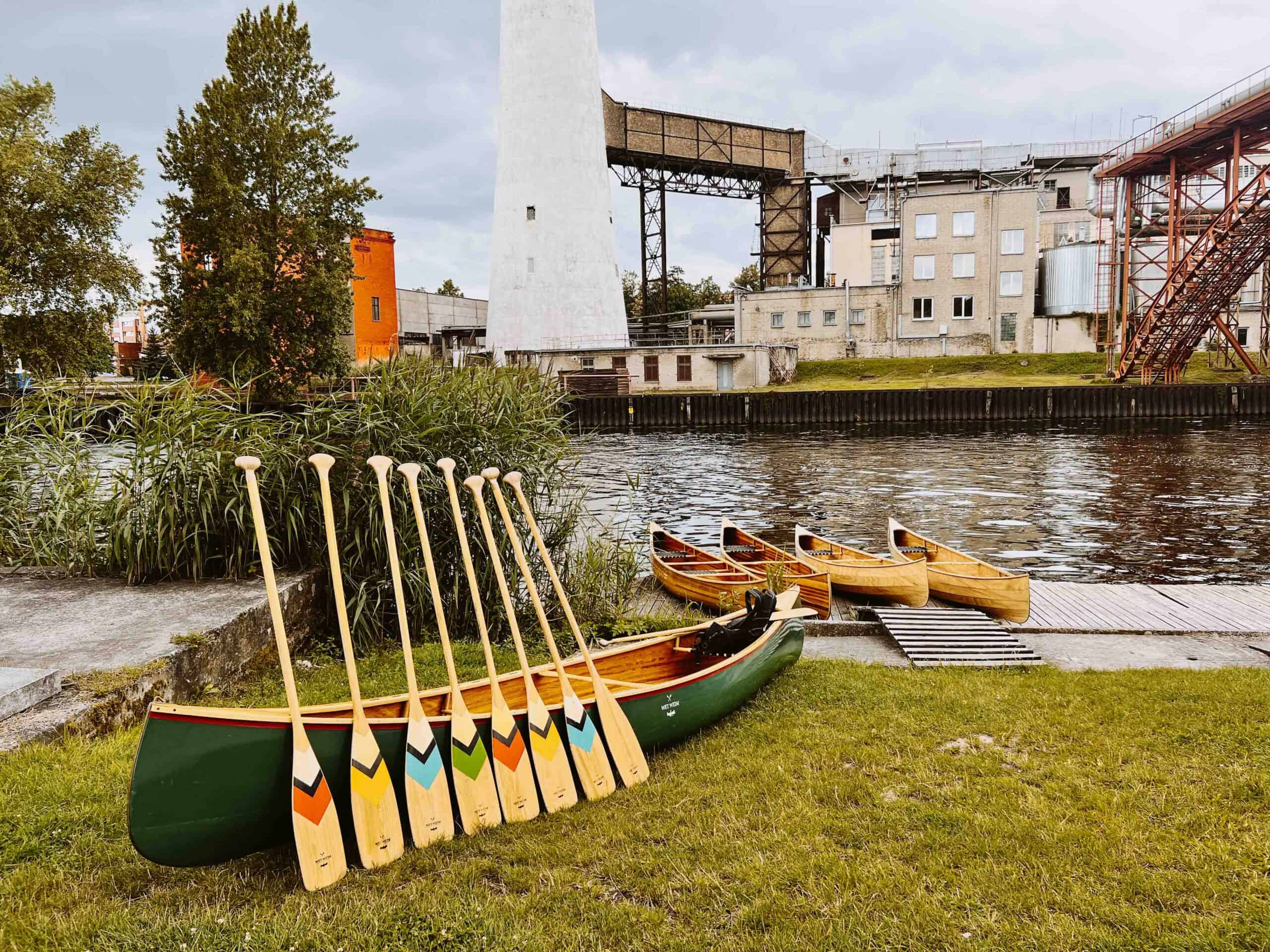 In Klaipėda lohnt sich eine Kanutour, um die Stadt einmal anders zu sehen. Anbieter wie Wet Weim paddeln mit dir über die Wasserarme rund um die Altstadt, vorbei an Kaianlagen, alten Speichern und stilleren Abschnitten der Dane. Viele Bereiche erreichst du nur vom Wasser aus – genau deshalb bleibt diese Perspektive hängen.