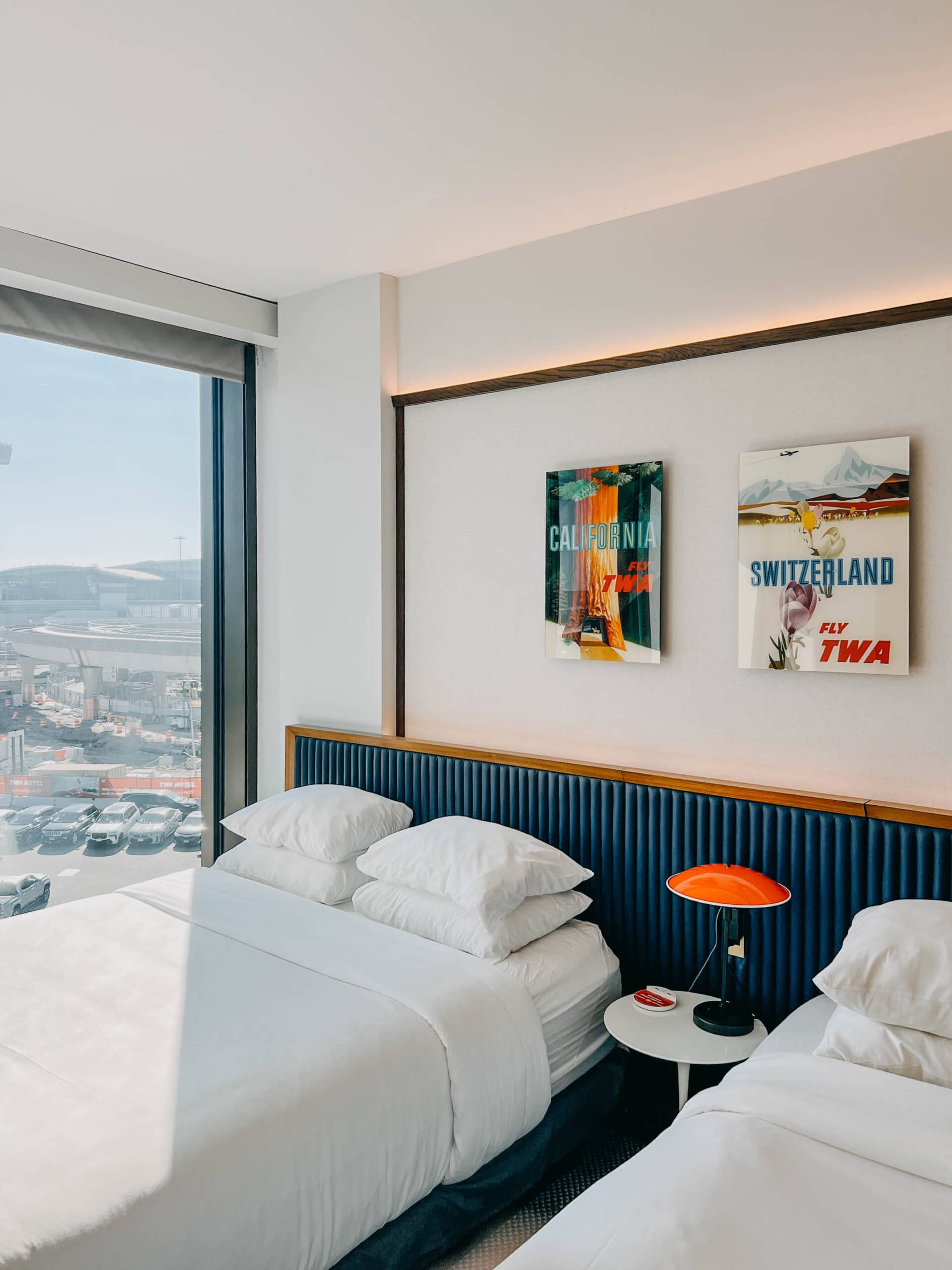 Das TWA Hotel befindet sich im ehemaligen TWA Flight Center von Eero Saarinen, das 1962 eröffnet wurde. Nach dem Ende des Terminalbetriebs im Jahr 2001 blieb die Architektur-Ikone lange ungenutzt, bis MCR Hotels sie 2019 als Hotel wiederbelebt hat. Heute ist es das einzige Hotel innerhalb der Grenzen des JFK Airports. Das historische Headhouse verbindet sich mit zwei modernen Gebäudeflügeln mit zusammen 512 Zimmern. Viele Details wurden originalgetreu rekonstruiert, etwa die weißen Keramikfliesen und die Solari Split Flap Anzeigetafel. Das Ergebnis ist ein Haus zwischen Museum, Filmkulisse und Hotel.
