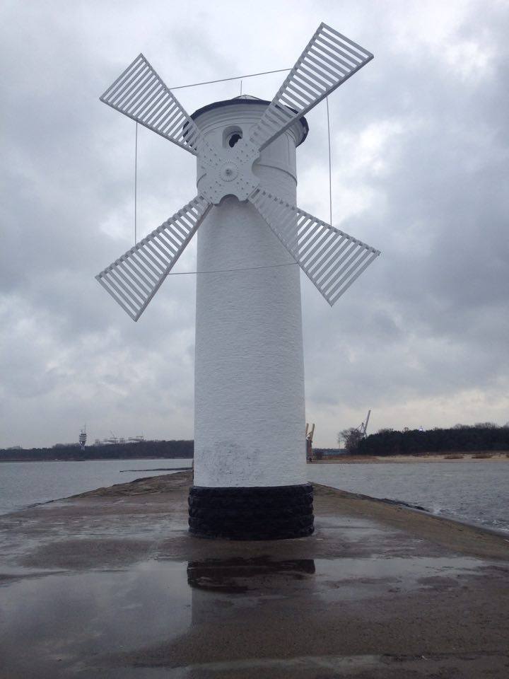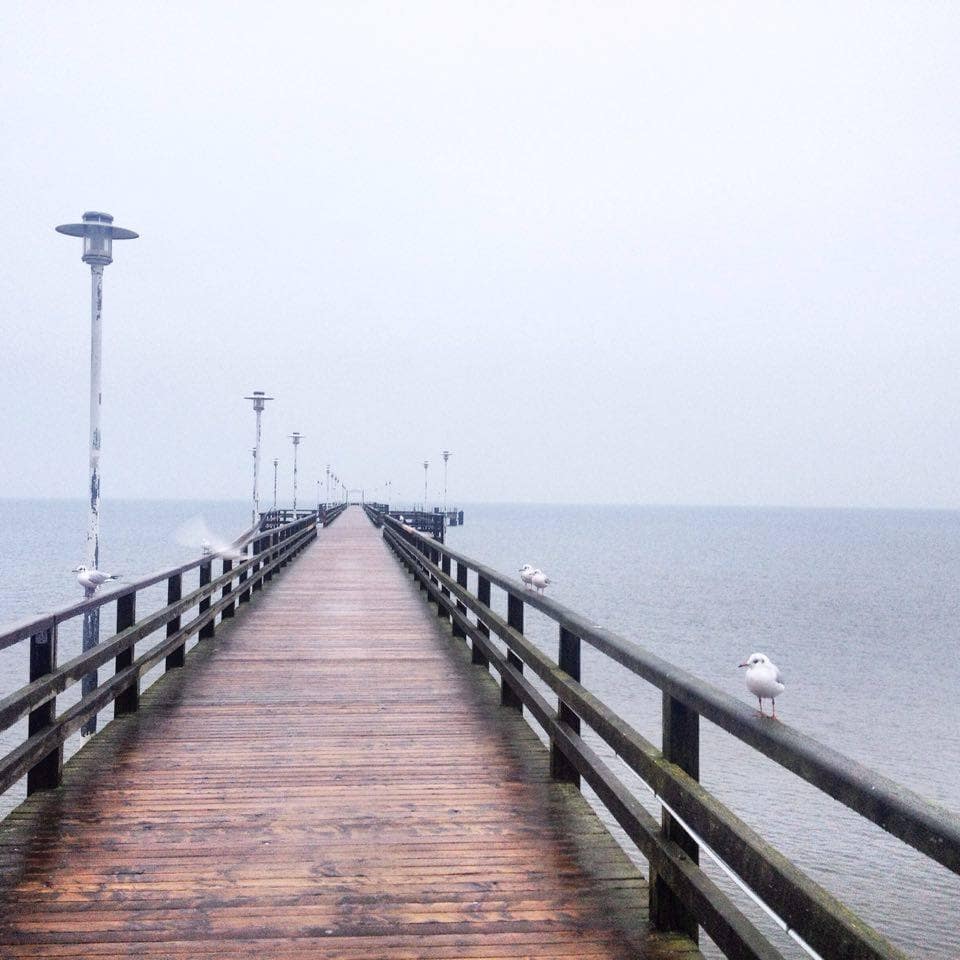 Meine Laufstrecke führte mich vom Seebad Ahlbeck ins polnische Swinemünde. Das waren lediglich knappe 7 Kilometer, schließlich habe ich nach meiner Laufpause gerade erst wieder mit dem Laufen angefangen. Wenn Du schon fitter bist, empfehle ich die 12 Kilometer lange Strecke vom Seebad Bansin bis zur Hafenstadt Swinemünde. Ich habe die Route direkt am Strand entlang gewählt, die an der wunderschönen Seebrücke Ahlbeck startet. (Die übrigens auch der perfekte Ort ist, um den Sonnenaufgang zu betrachten!) Während Laufen auf Sand verdammt anstrengend sein kann, hatte ich das Glück, dass der Sand dort recht hart war, ein idealer Laufuntergrund also. Auf der Strecke begegnest Du im Winter ein paar wenigen anderen Läufern, Spaziergängern mit Hunden, Lachmöwen und mit etwas Glück auch einem Seeadler. Wenn Du die ‚Windmühle „Mühlenbake,“ das Wahrzeichen des Swinemünder Hafens siehst, hast Du die Strecke bereits geschafft. Ziemlich spektakulär wird es, wenn hier gerade ein großes Fährschiff vorbeigleitet, denn hier befindet sich die Fährroute nach Trelleborg in Schweden.